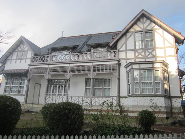 名鉄知多半田駅から徒歩数分の所に、こんな美しい洋風建築があったのか、と思わせてくれる素晴らしい建物でした。半田を代表する豪商・中埜家の第十代中埜半六氏の別荘として明治末期に建てられたそうですが、素人目に見てもそのお洒落な外観(ハーフティンバー建築というそうです)に目を奪われてしまいました。