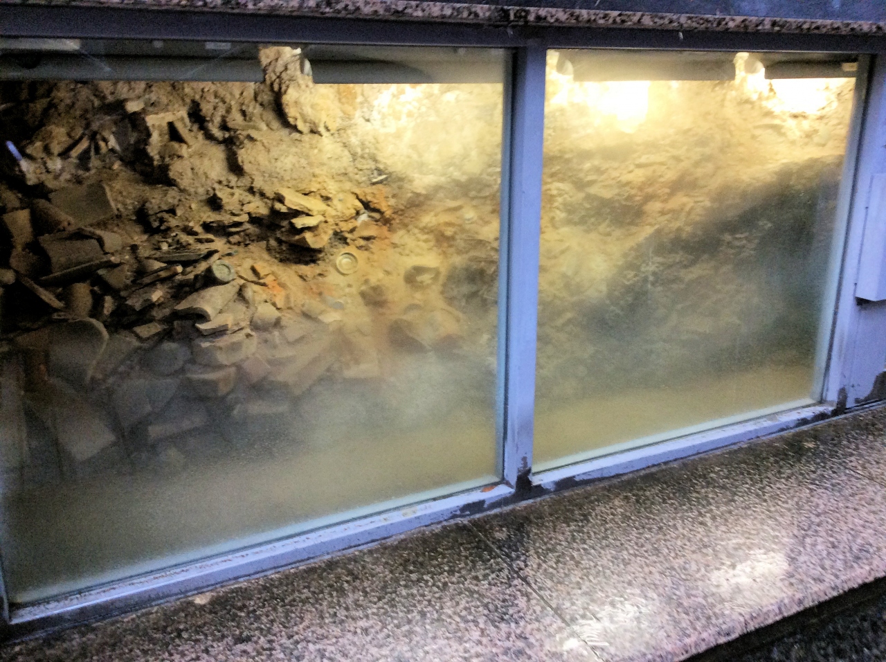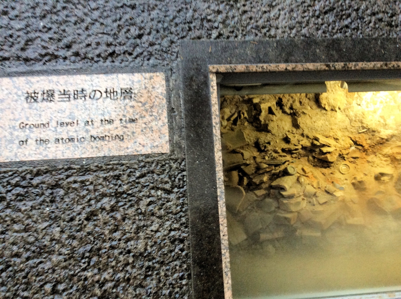 被爆当時の地層が残っていて、家の瓦やレンガ、茶碗などを見ることができます。一瞬にして何もかもがなくなってしまったことがわかる貴重なものです。