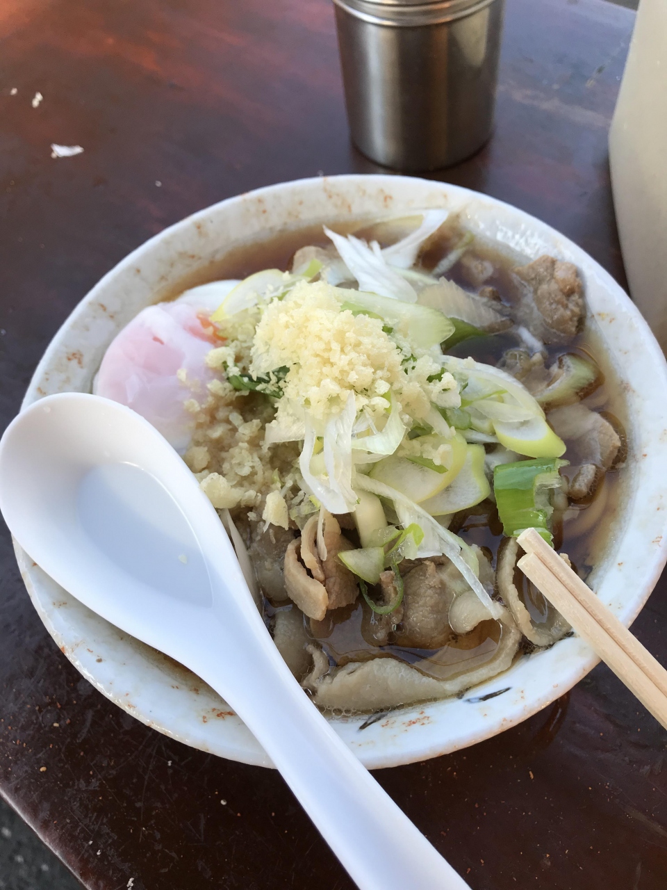 うどんにしましたが、見た目の色と違い、大変さっぱりした出汁、しっかり味がしみている豚肉。