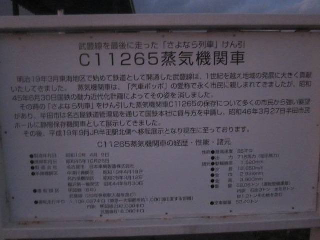 JR最古の跨線橋があることで知られる半田駅のすぐ傍にある鉄道資料館ですが、ここは内部見学可能なのは毎月第一・第三(1月だけは第二・第三)日曜日と、月二回だけしかありません。しかも見学時間は10~15時と短めなので、タイミングを逃さないように訪問することが重要な施設です。ただ、ここの横には、かつて「さよなら列車」として武豊線を走行し、市民の熱い思いが結実して静態保存されることになったC11265型SLが屋外展示されていますので、これを見るだけでも訪問する価値は十分にあるかと思います。