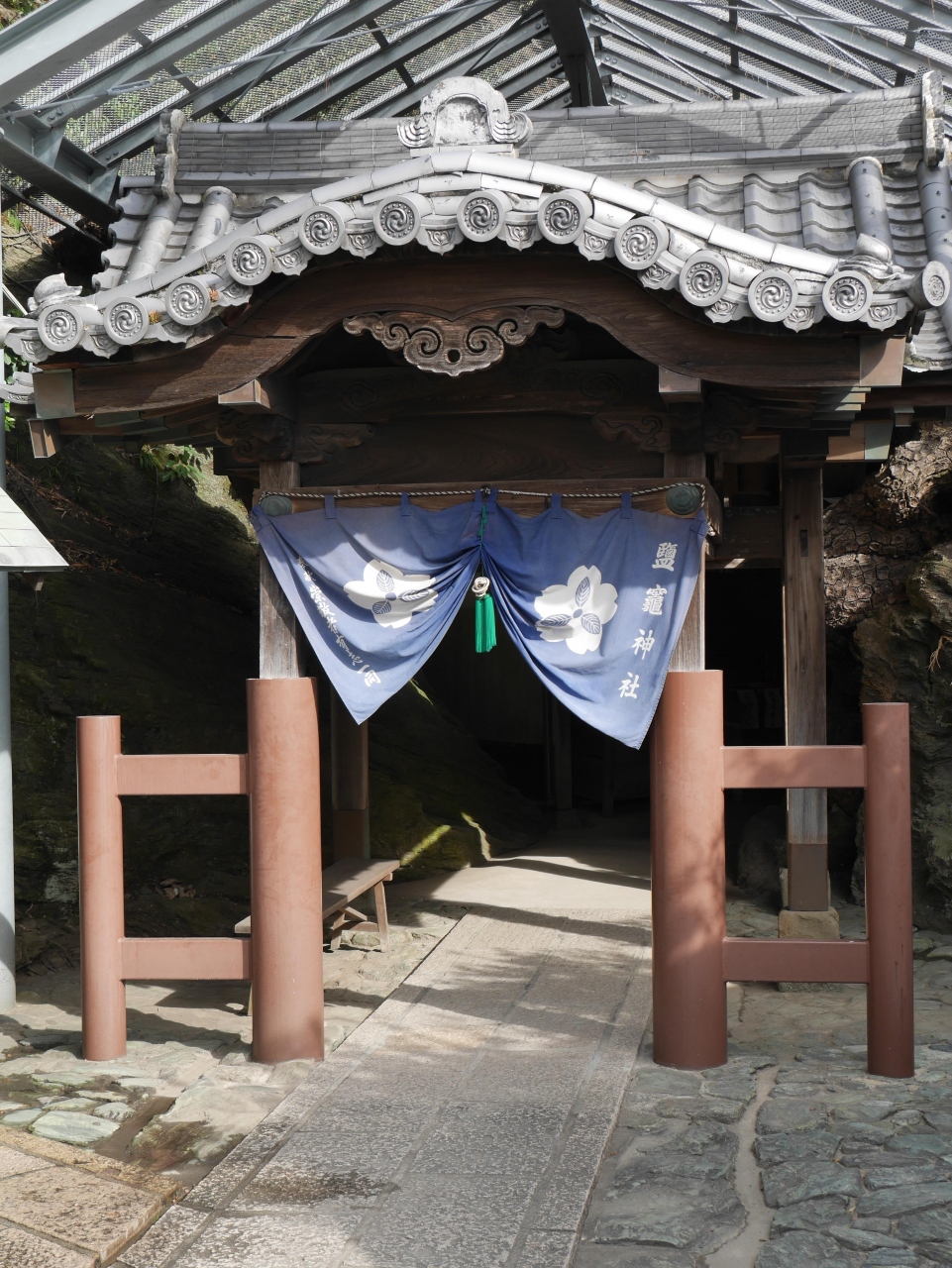 洞窟のような場所の中に祠がある、小さな神社です。玉津島神社に隣接しています。