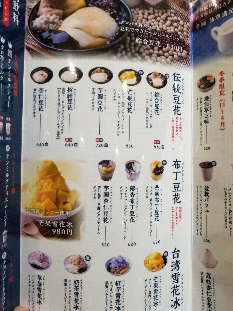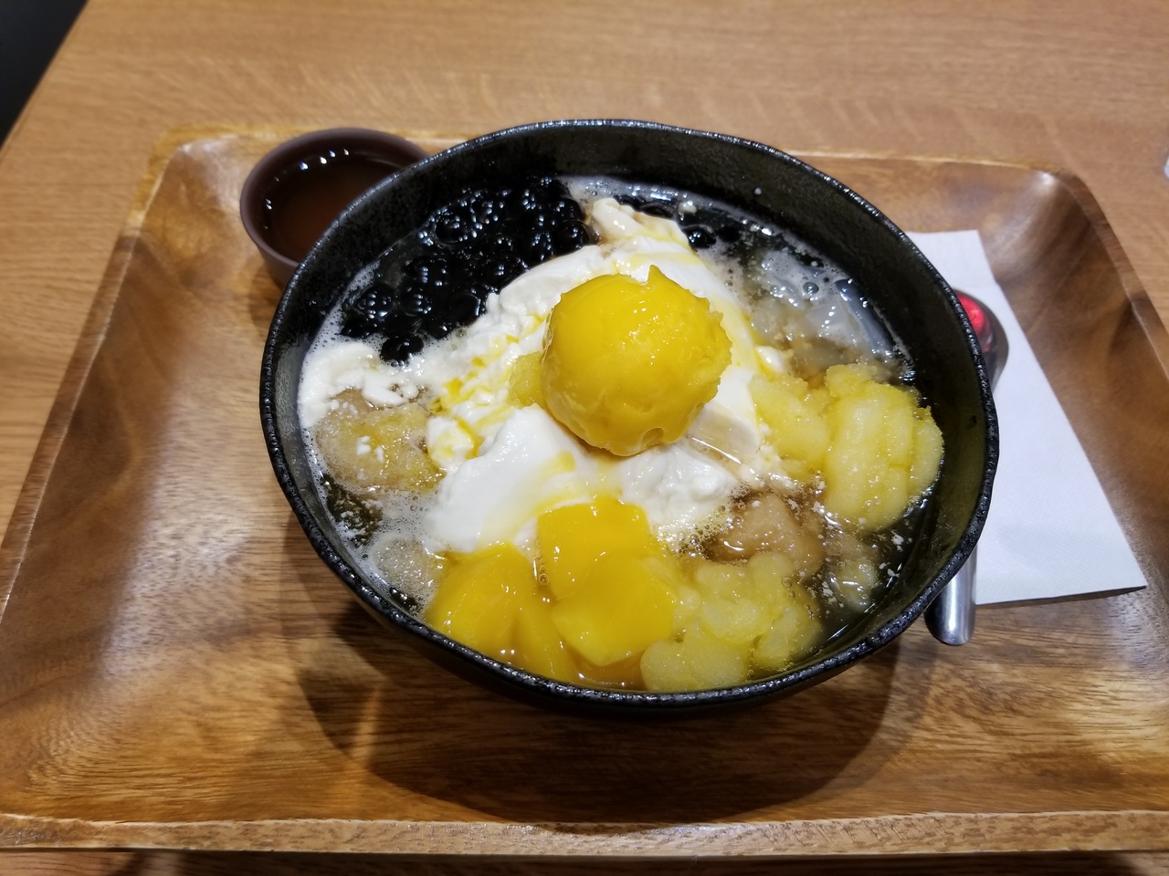 暖かい豆腐と冷たいアイスタピオカなどがはいっていて