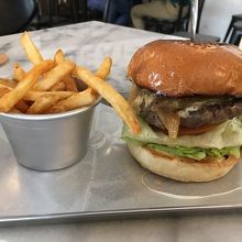 ランチで利用しました。ドリンクは紅茶やコーヒー等セルフで飲み放題です。チーズバーガーを注文したのですが、ジューシーで厚みのある豪華なハンバーガーでした。サイドにポテトも付くのですが、多すぎずちょうどいい量でした。