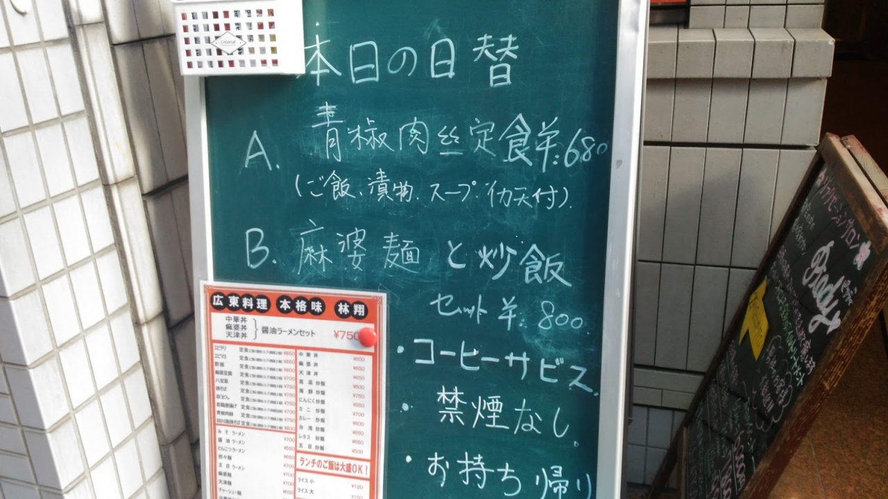 このあたり中国人がやっている大衆中華料理店が多く、メニューはラーメン、天津飯、酢豚、海老チリなど日本らしい中華料理が基本で、看板にある「本格的広東料理」とは程遠いものです。とはいえ、昼は700円から900円の間で各種メニューがあり、夜は2980円飲み放題食べ放題オーダーバイキングをやっているのも他の店とほぼ同様で、お手軽な店です。