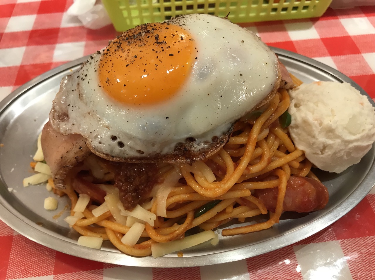 夕食にナポリタンを頂くことに。LINEのクーポンで全部乗せ無料券があったので、有り難く使わせてもらいました。普通盛りで400gとボリュームがある上に、ベーコン・ハンバーグ・目玉焼きが乗り、満腹になりましたが大変美味しく頂きました。