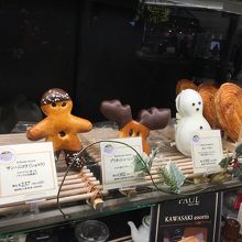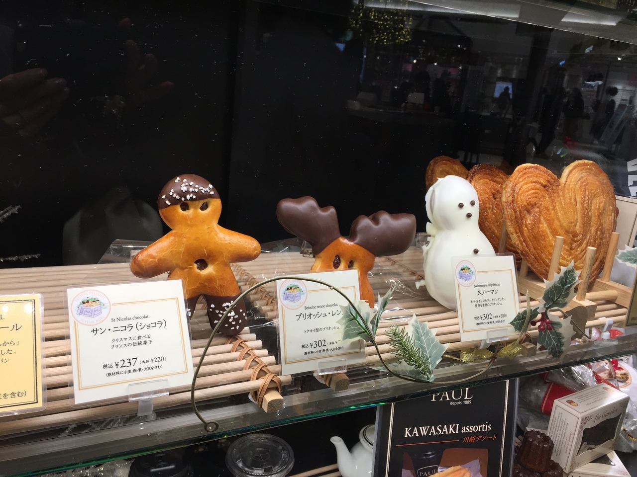 アトレ川崎にあるパン屋さんです。クリスマス用のホワイトチョコでコーティングされたスノーマンのパンや、トナカイ型のパンや、人形型のパン( クリスマスに食べるフランスの伝統菓子だそうです) など可愛らしいパンが販売されていました。