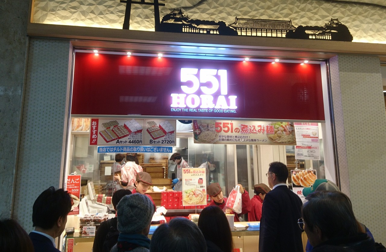 京都駅にある551蓬莱さんは小さな店舗ですが、いつも行列をなしています。