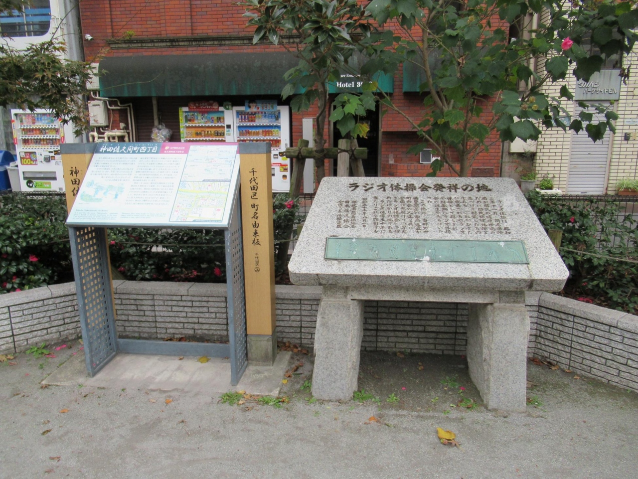 地下鉄・秋葉原駅から散策の折立ち寄った千代田区神田佐久間町3丁目にある佐久間公園内で見掛けたのがこの顕彰碑で、御影石のテーブルを斜めにしたような形なので顕彰碑らしさをあまり感じない石碑です。