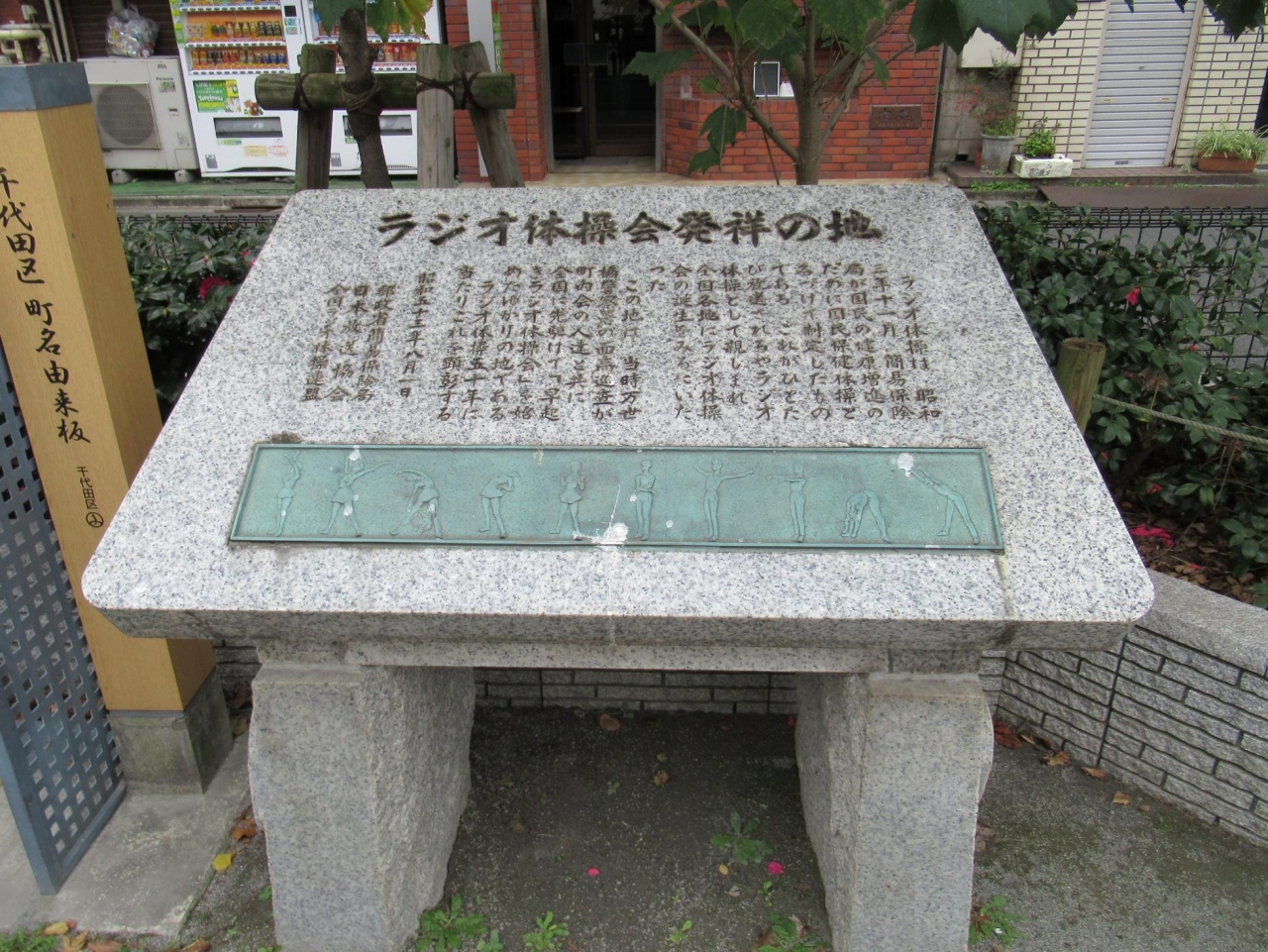 碑文の下には、体操をしている姿を描いたプレートがあり、その昔、夏休みなどに眠い目をこすりながら広場に集まったことを懐かしく思い出したところです。