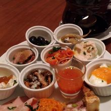 小さいお店なのでいつも満員です。カウンター席で1人で飲んで食事している若い女性もいました。前菜盛り合わせ、バーニャカウダ、フォカッチャ、パスタ、ピザ、ティラミスなどを頂きました。どれもとても美味しいです。お昼のランチにも行ってみたいのですが、いつも混んでいます。駐車場がないのが難点です。