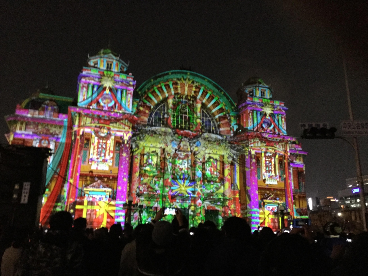 大阪の淀屋橋近くの市役所横でクリスマスの時期に、毎年あるイベントの「大阪 光の饗宴」に行き、イルミネーションとウオールタペストリーを楽しんで来ました。イルミネーションは前に来た時よりバージョンアップしていて夢の世界でした。そして横の中之島図書館のウオールタペストリーも素晴らしかったです。愛溢れる演出で、胸いっぱいになります。以前より写真映えする様にもなっていて嬉しかったです。