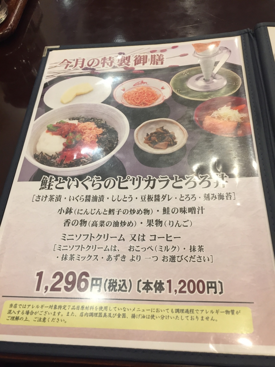 そして買い物の後は 2階レストランで加島屋らしい鮭の食事をいただく。
