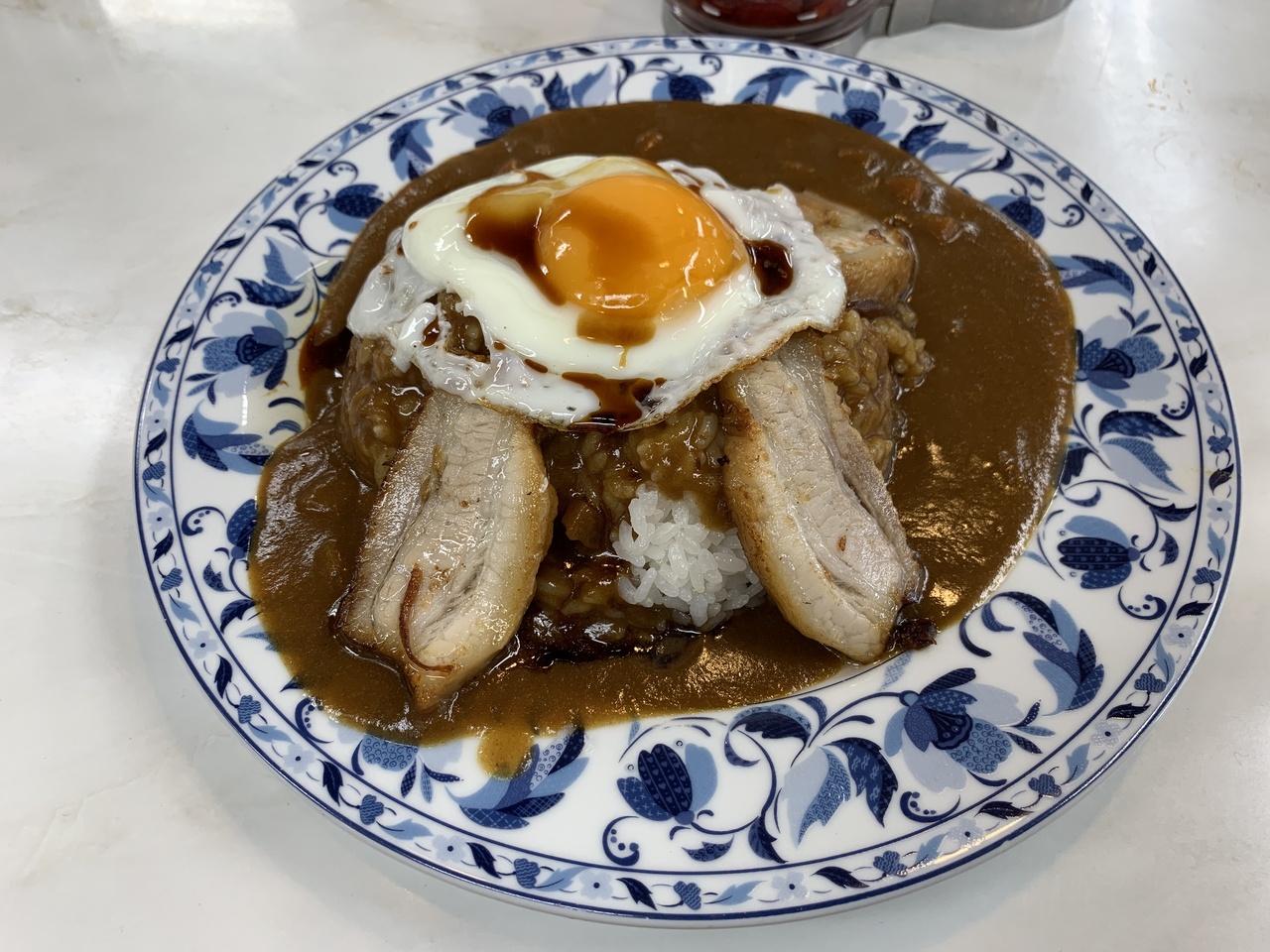 今回私が注文したのは、同じ愛媛の今治で名物だと言う、焼豚玉子飯とカレーを融合させた焼豚玉子カレーです。