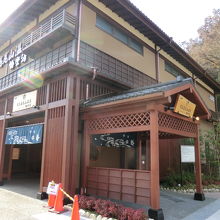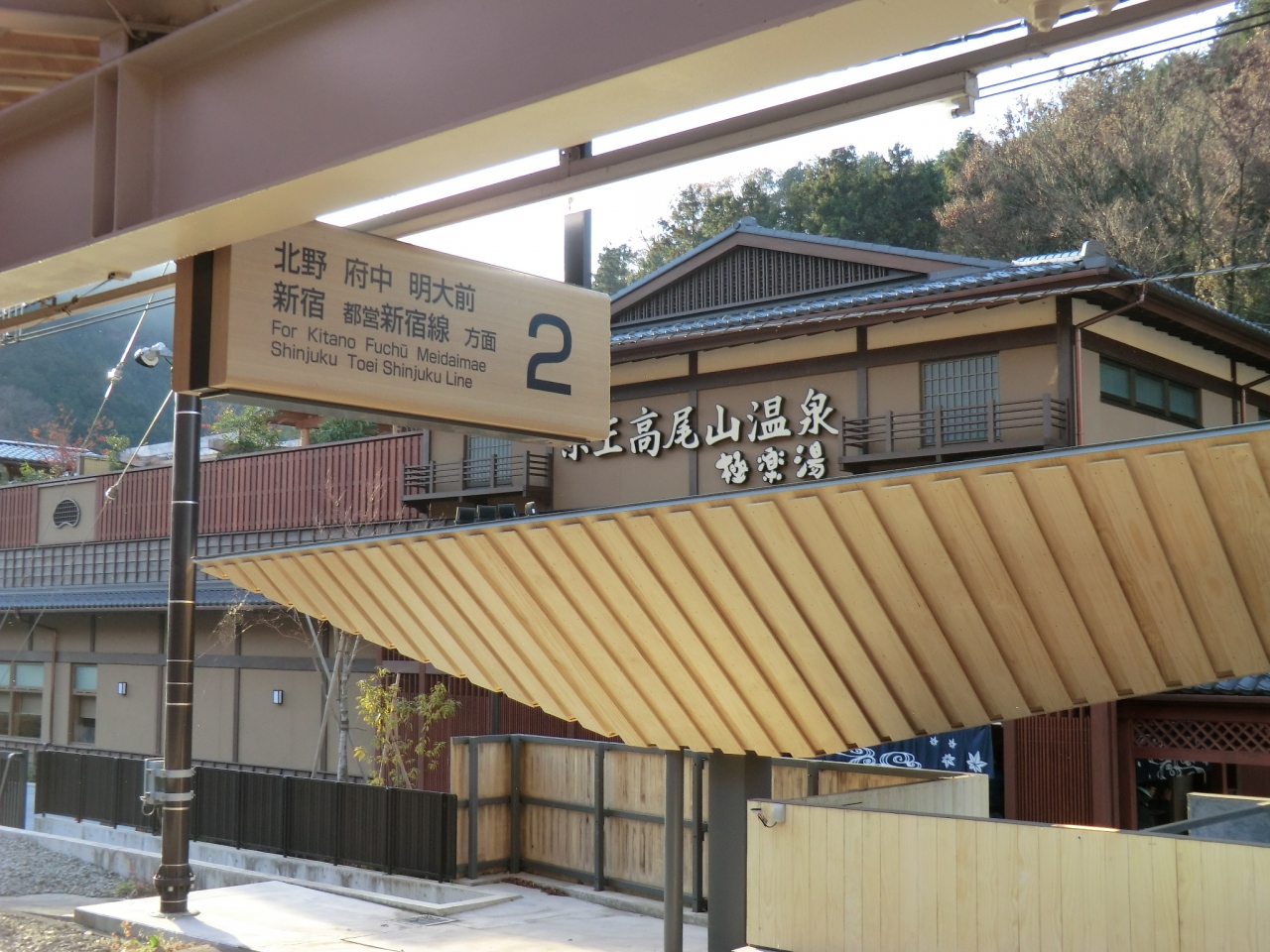 高尾山口駅前の日帰り温泉、駅改札口から専用の連絡口を通り、徒歩一分弱で到着しました。