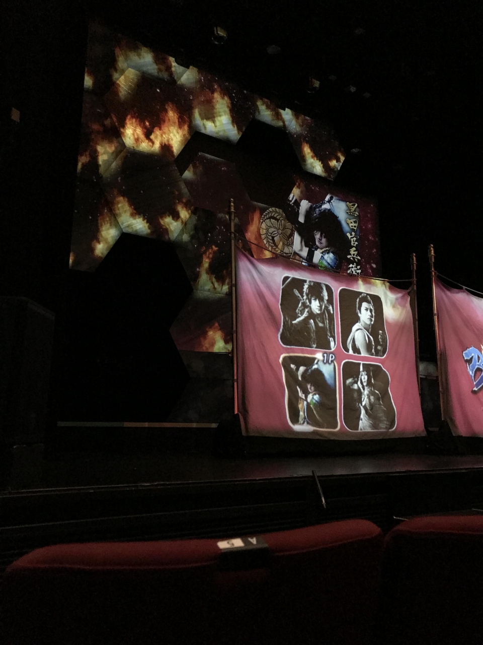 収容人数400ほどど小規模な劇場ですが、戦国BASARAは出演者が客席の通路を通って登場することが多いので臨場感があり度の席でも楽しめる印象でした。
