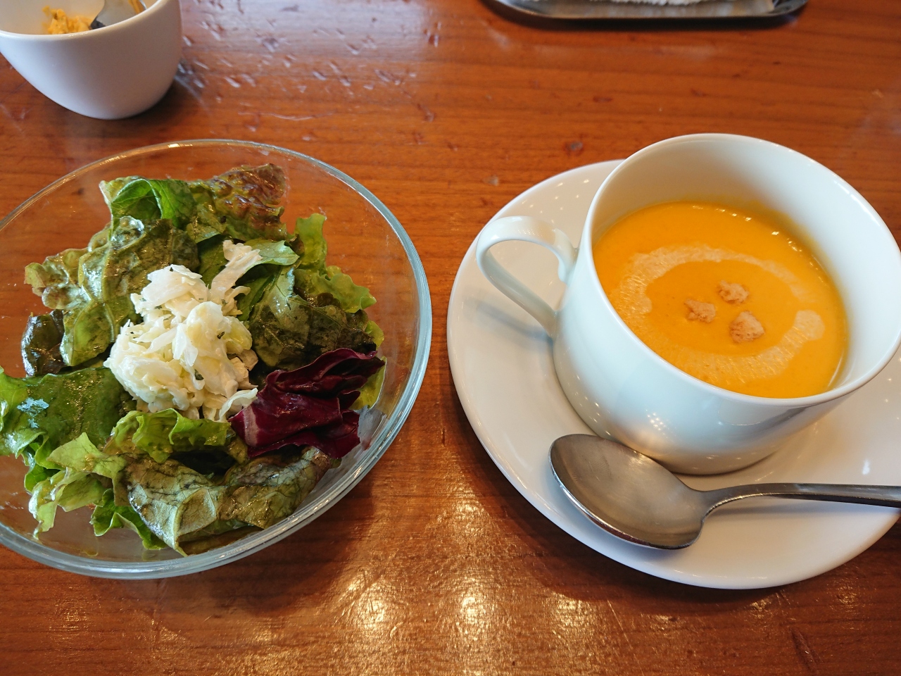 サラダ、スープも付くのでボリューム満点でした