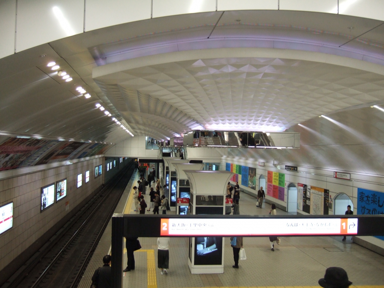 今回も大阪出張で何回か乗りましたが、天井の高いドーム型の天井を持つホームは、社会主義国の地下鉄のような独特の雰囲気。各駅ごとに意匠をこらした蛍光灯のシャンデリアが他の路線にはない雰囲気を醸しています。