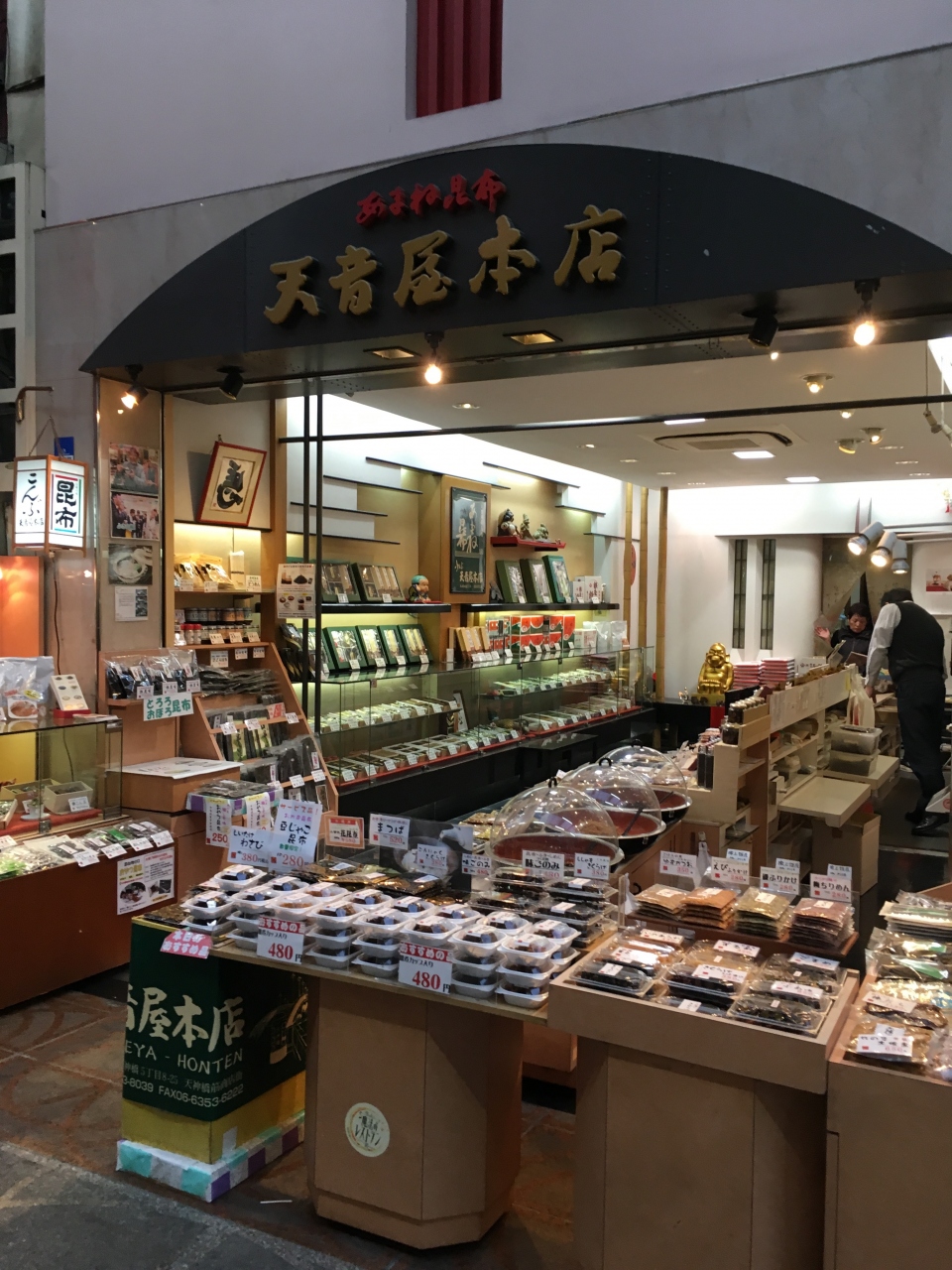 大阪でも一番大きな商店街の天神橋筋商店街にある昆布や佃煮、ちりめん山椒などを販売している天音屋本店さん。値段も割合買いやすい値段帯ですが、美味しいので重宝します。贈答品にすることも出来ますし、自宅用の簡単な包装のものはより割安な値段です。