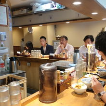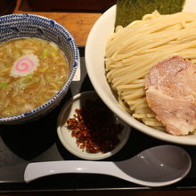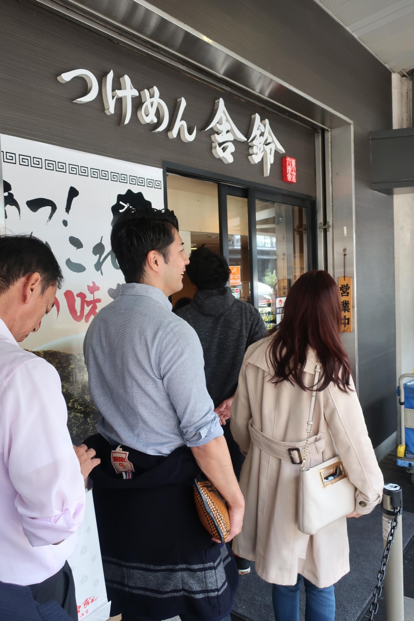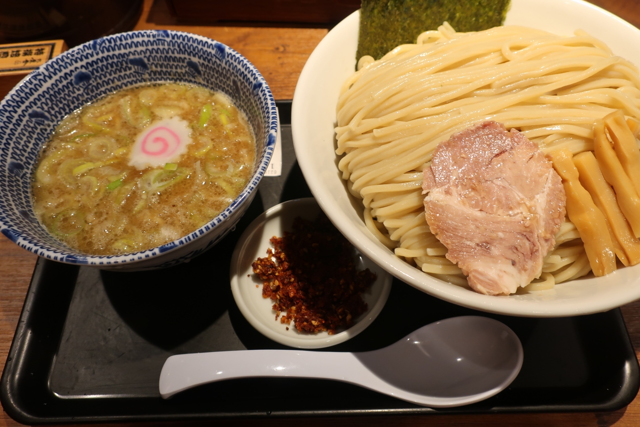 上野駅アトレの上野恩賜公園側に面した所に、つけめん 舎鈴はあります。土曜日の12時過ぎに行くと店頭には8人程の行列。結構外人さんも並んでおり10分程待って中に入れました。店内はL字型のカウンター席で15席程ありました。頂いたのは赤辛つけ麺730円。とんがらしが別盛りになった、つけ麺は中太麺で魚介出汁を使った味はまさに王道のつけ麺。六里舎のわりには意外と普通の味でした。