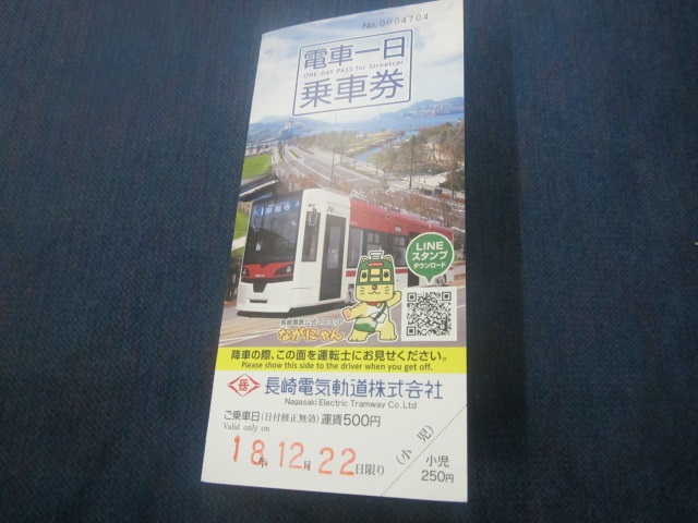 長崎観光では誰もがお世話になることになる路面電車だと思いますが、他の町の路面電車と比較して、色々とユニークに感じる点があります。例えば、一日乗車券は500円で販売されていますが、車内では買えないので、乗車前に購入しておく必要がありますが、今も尚、スクラッチ式ではなく日付をスタンプで入れてくれるタイプで、日付を入れた状態での前日購入が可能です。あと、市民の方はよく進行方向と逆側の運賃箱にて、チャージをされている光景が見かけたり、とか、乗車の際は一応中央からが原則となっていますが、下車客がいない場合や、ひと段落しても、中央の乗車口が混雑している場合などは、通常下車口の前方からも乗車できます。