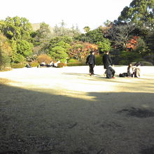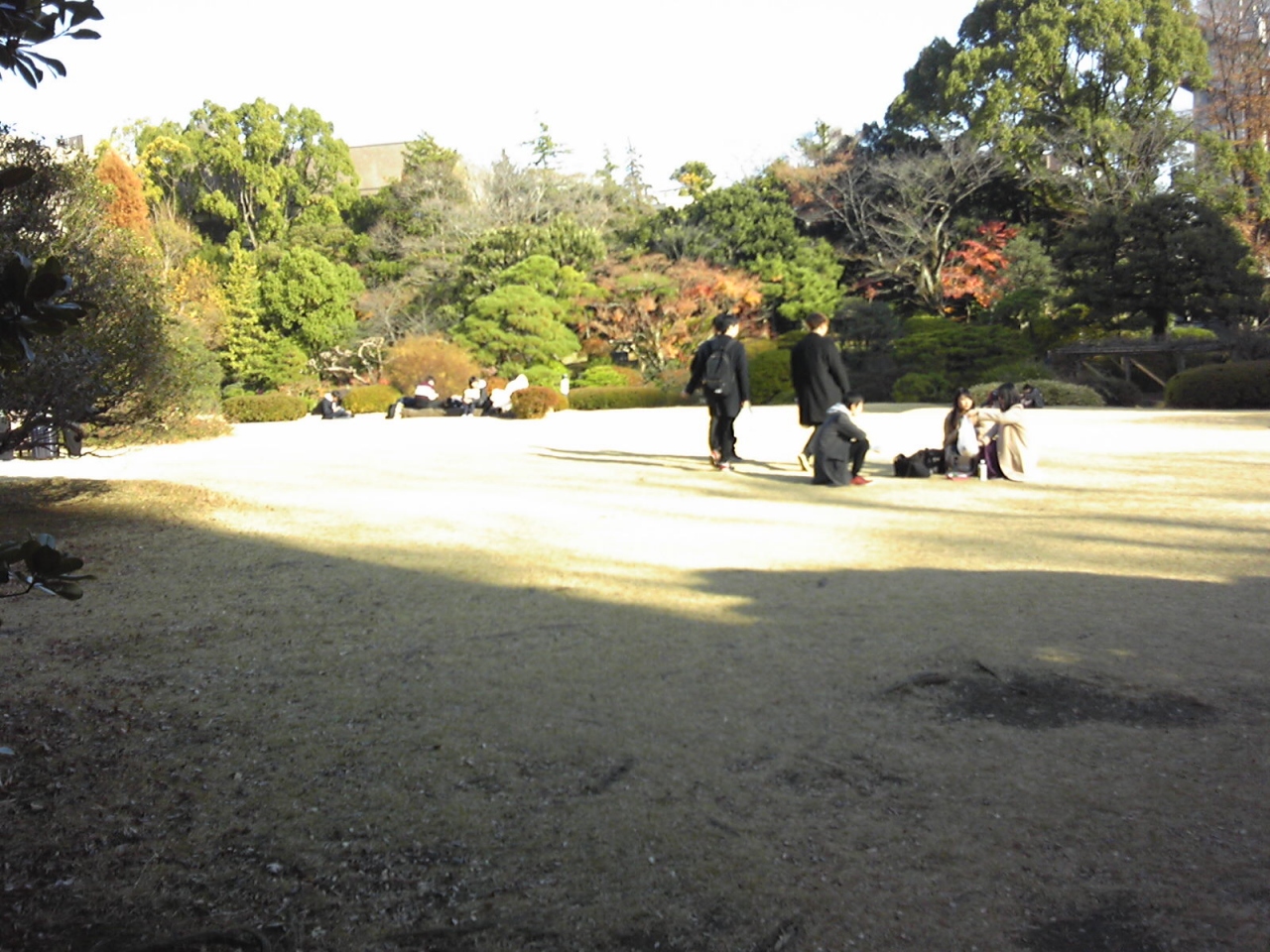 比較的広い芝生があり、学生さんがお弁当を食べてりしていますが、