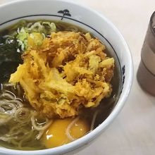 東京メトロ秋葉原駅すぐのところにある立ち食いそば屋さんです。朝食を食べに行ったので朝そばを頼みました。かき揚げに生卵を入れていただきます。朝からしっかりと食べることができるのはうれしいですね。スープもだしが効いておいしいです。