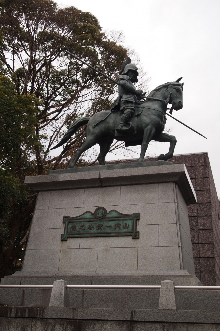 馬の上には土佐藩の初代藩主、山内一豊がいます。
