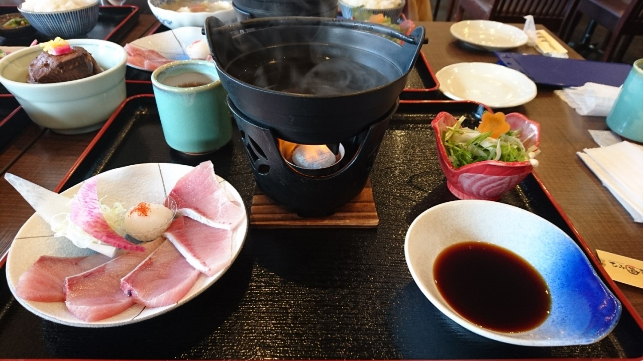 氷見の寒ブリはブランド。そのため週末には市内の料理屋だと予約すら入らない場合がある。その点お奨めは、道の駅「ひみ番屋街」にあるこのお店。ランチ利用で訪れたが、開店が11時でこの時間近くに行けばまず座れるが1時間もすると満席になってしまう。かなり広めのレストランで、2階が団体の食事場所のようだ。ぶりしゃぶは仕入れの関係か、定番メニューには載せず黒板に表示。その他、今日のおすすめ的なものも黒板に表示。定食がメインだが、もちろん単品でも頼める。刺身やブリ大根も旨買ったが、やっぱり寒ブリのしゃぶしゃぶには感動した。