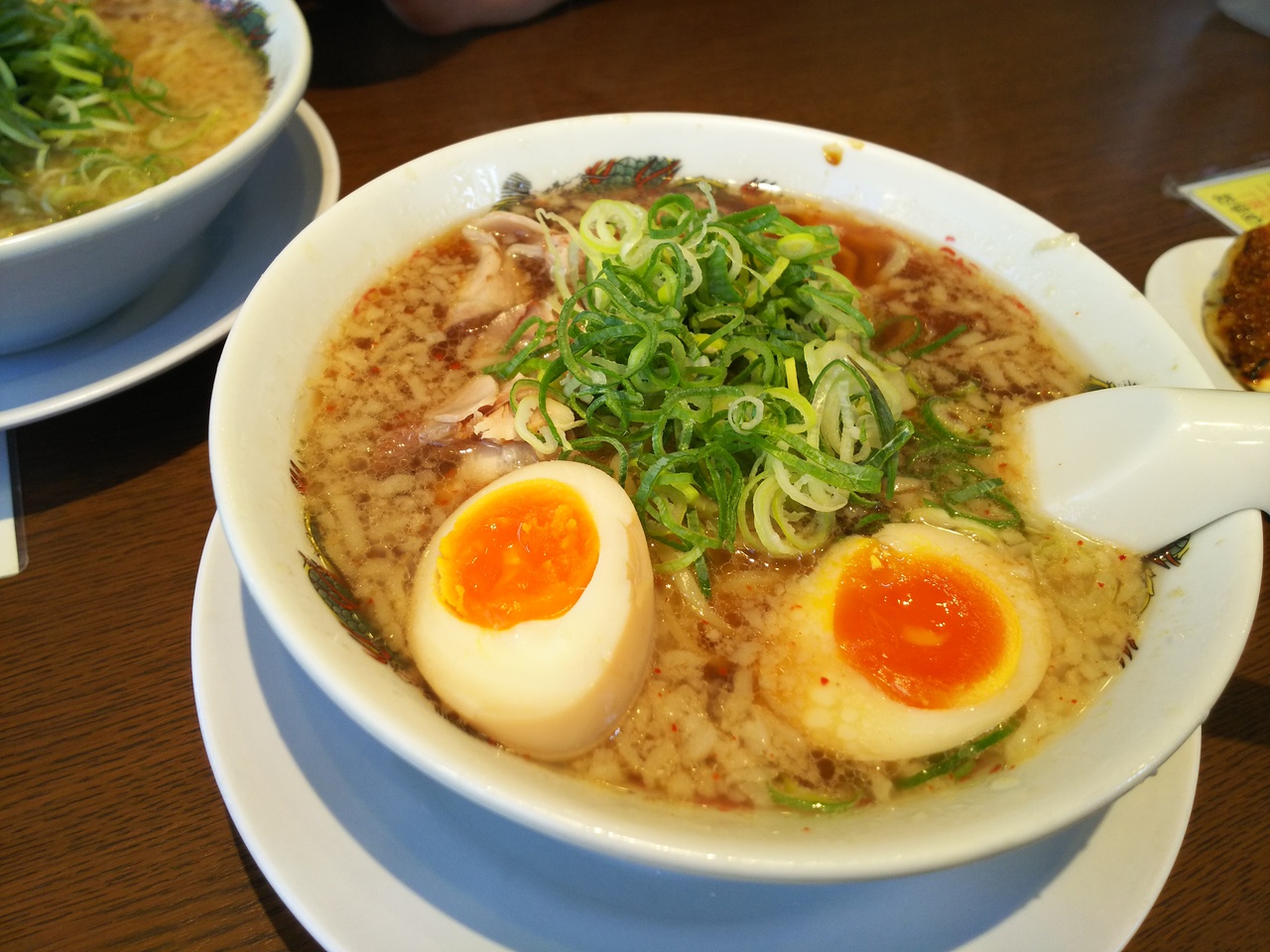こってりラーメンはみそベース。味玉はしようゆベースのスープで美味しい!!