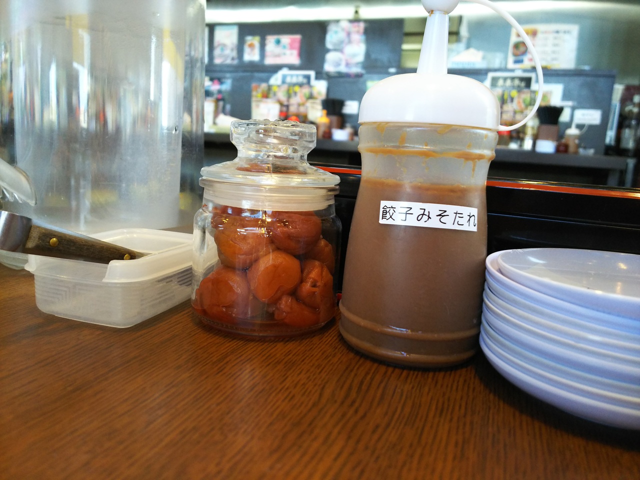 餃子はあんは普通。焼き方が絶妙で、焼き目パリパリ、そしてもっちり。美味しかったです♪みそダレも置いてありましたが、タレの味は普通でした。