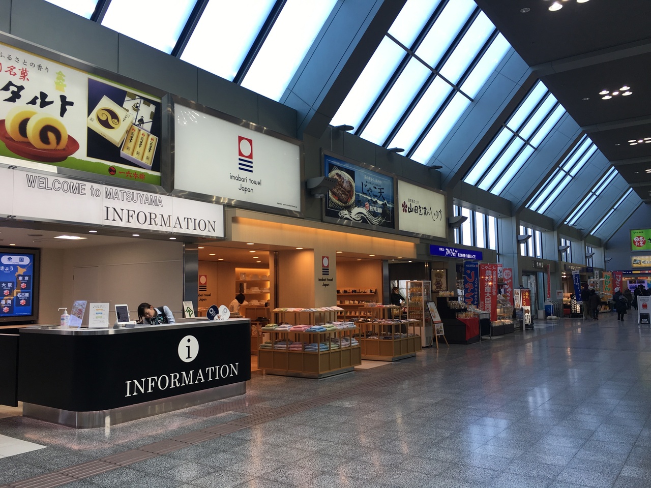 飛行機の到着時間に合わせて松山市内・道後温泉へのリムジンバスも出ており、市内へは30分で行けて利便性は高いです。