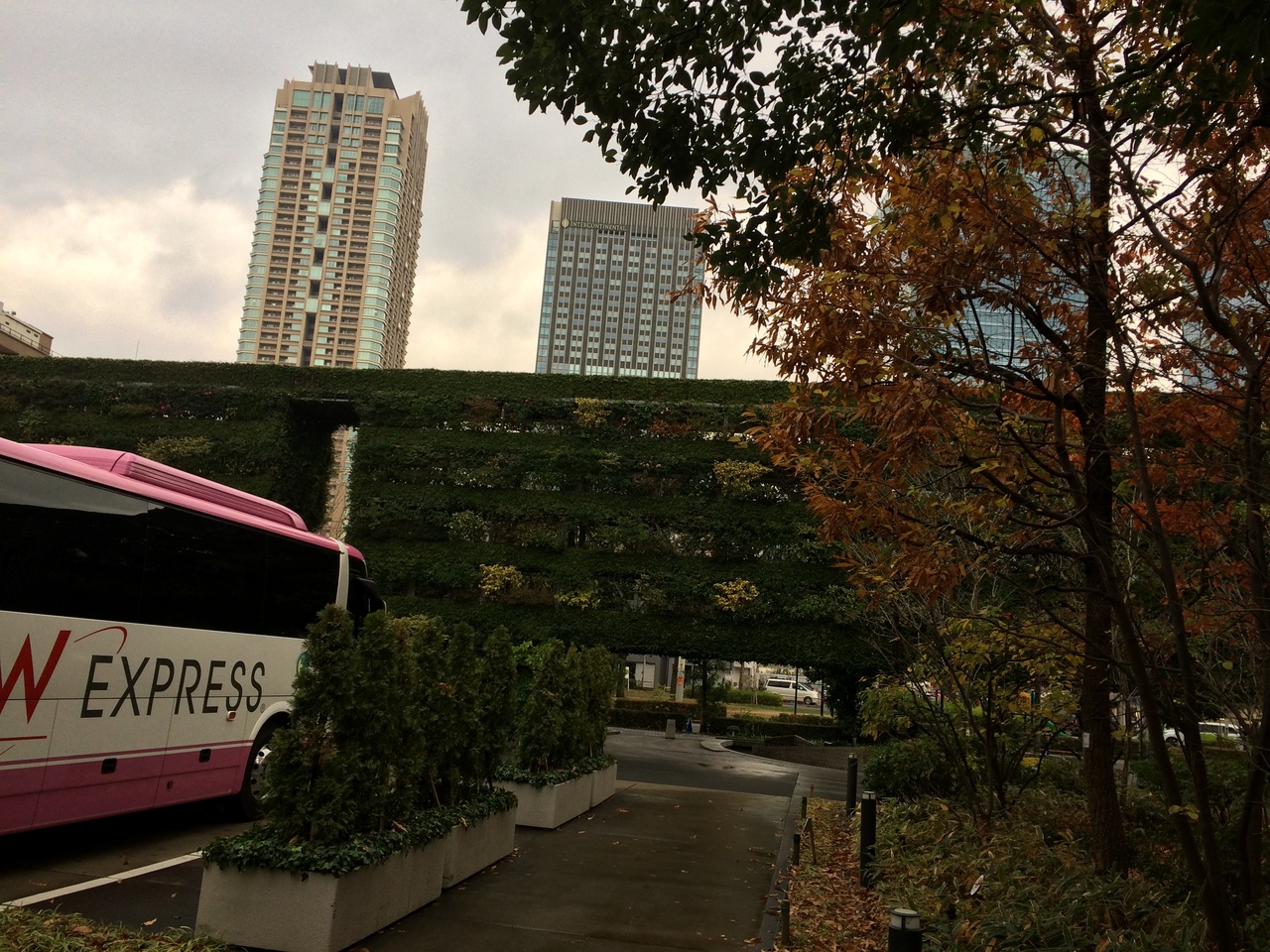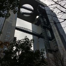 ビル一階のウィラーバスターミナルとバス乗降場の間に郊外の里山を模した雑木林風の庭園があります。梅田のビル群から新梅田シティまでまだ再開発中で殺風景な区域を歩いて来るのでこの庭園は心が落ち着く空間です。