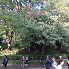 上野恩賜公園にある正岡子規記念十条の南側に小山があります。この小山に見える山が摺鉢山古墳です。これまで何回もこの場所を通っていたのですが、まさかこの小山が古墳だとは思ってもみませんでした。説明版をみると全長70mある前方後円墳だそうです。古墳には階段がつけられ上れるようになっていますが、上っても上部は削れ平地になっていて古墳には見えません。