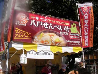 中野駅の近くで行われる青森県の祭典で、にんにくやリンゴジュース、海産物のいか焼きや大湊海軍コロッケなどの特産品を売っています。B級グルメの八戸せんべい汁、馬肉鍋もあり、津軽三味線や郷土芸能をやっていました。