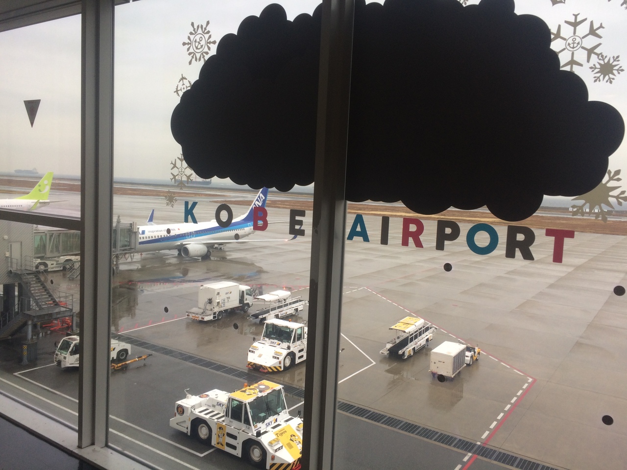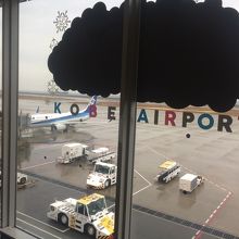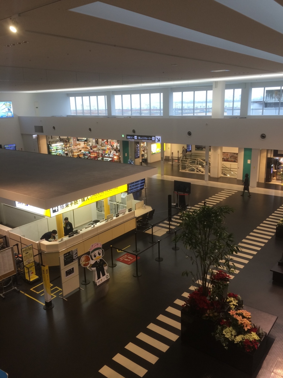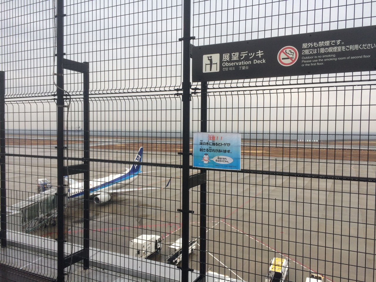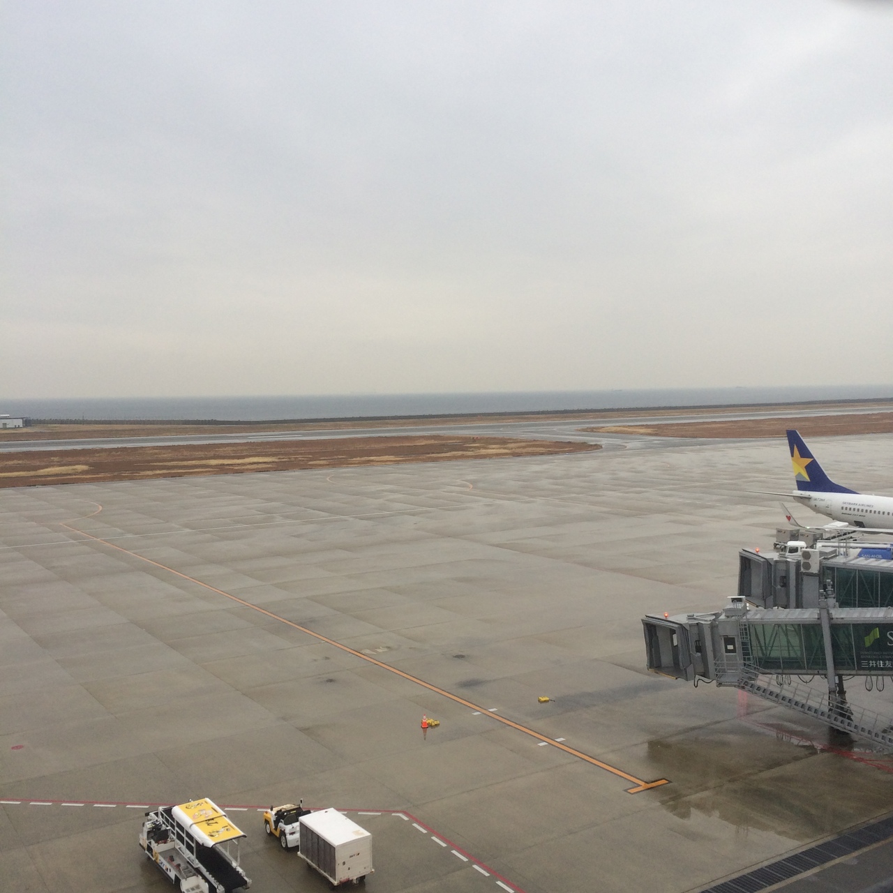展望デッキに行くと滑走路の後ろがすぐ海でした。コンパクトにまとまった空港でごちゃごちゃ感がないのが良いです。カード会社のラウンジに行こうと思ったら搭乗ゲートの中でした。飛行機の離発着がないときは閑散としていました。