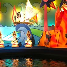 前から子供たちが大好きなアトラクションでしたが、リニューアル後はディズニーキャラクターが所々に登場して、それを探すのも楽しくなりました。