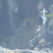 若松島の里ノ浦のキリシタンは、明治初めの五島崩れの際、迫害を避けて船でしか行けない険しい断崖の洞窟に隠れたが、焚き火の煙を船に見つけられて捕縛され拷問を受け、この洞窟は後にキリシタンワンドとよばれ、1967年に入口に十字架と3mのキリスト像が設けられたそうです。