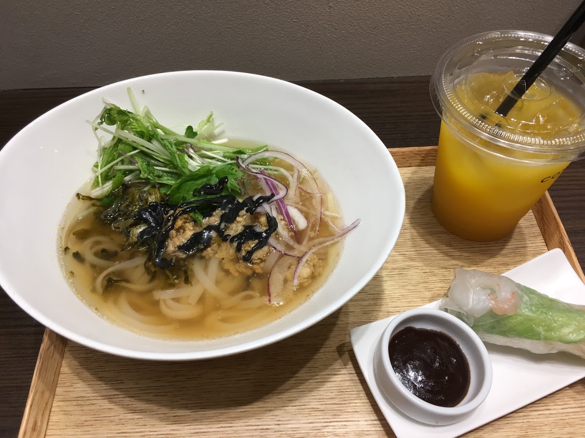 柏モディ店の一階です。ランチで利用しました。フォー、ドリンク、生春巻きで1000円程度でした。フォーはいろいろな味があり、今回は黒ゴマにしました。テーブル席は少ないですが、カウンター席もあり、女性一人でも入りやすい店舗です。