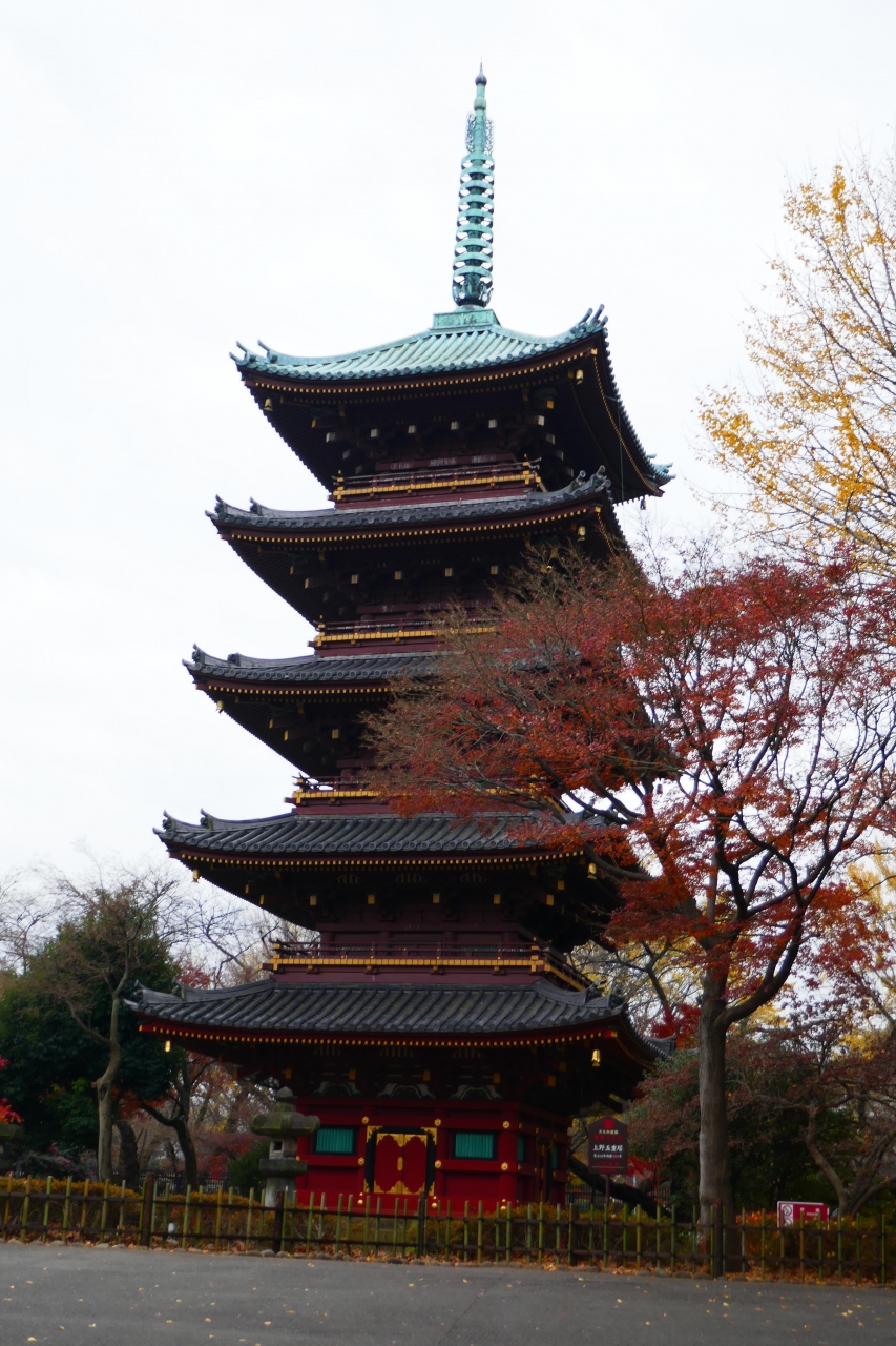 寛永寺というのは開基が徳川家光という歴史あるお寺ですが,なぜか五重塔は動物園内にあり,外(上野東照宮など)からも見ることはできますが動物園から見た方がしっかり見ることができました.
