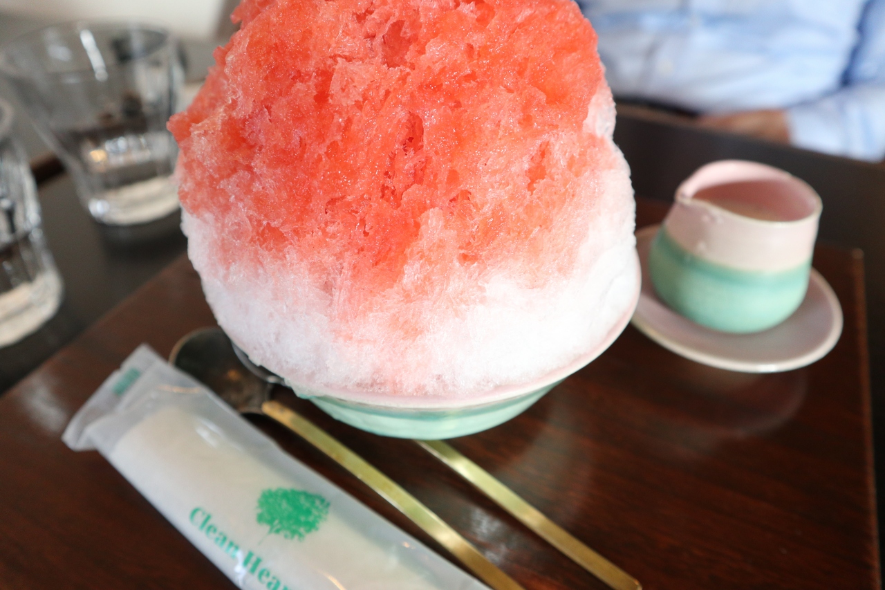 私たち夫婦は、かき氷のイチゴ(ミルク)を