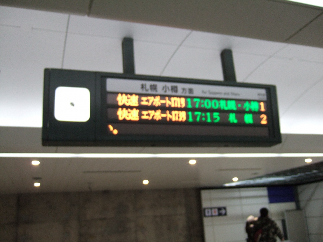 新千歳空港から札幌方面へ15分おきに出ている快速エアポート。札幌行きと小樽行きが交互にあります。
