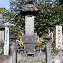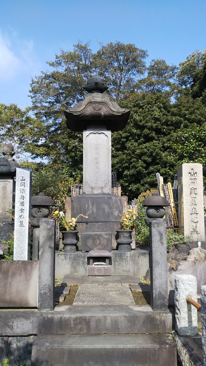 谷中三崎坂の途中、全生庵の墓地の中に在ります。墓石自体は立派ですが、巨大と言うほどではなく、敷地も広くないので、近くへ寄らないと判りません。偉人と言える人なんですけどね。
