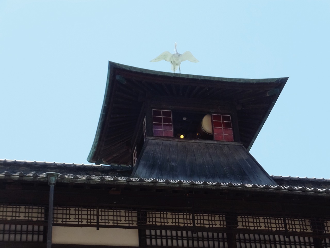 道後温泉のてっぺんに乗る太鼓楼のこと。太鼓が1日3回なります。