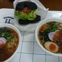 白うさぎの道の駅の1階にある食事をする所です。モサバーガーとわにラーメン(どちらも500円)を頼みましたが、モサバーガーはハートで可愛いのですがモサエビの硬いところかヒゲのようなものが入った食感があまり好みではなかったです。ワニラーメンもスープがドライブインなどにあるようなありふれた味でした。