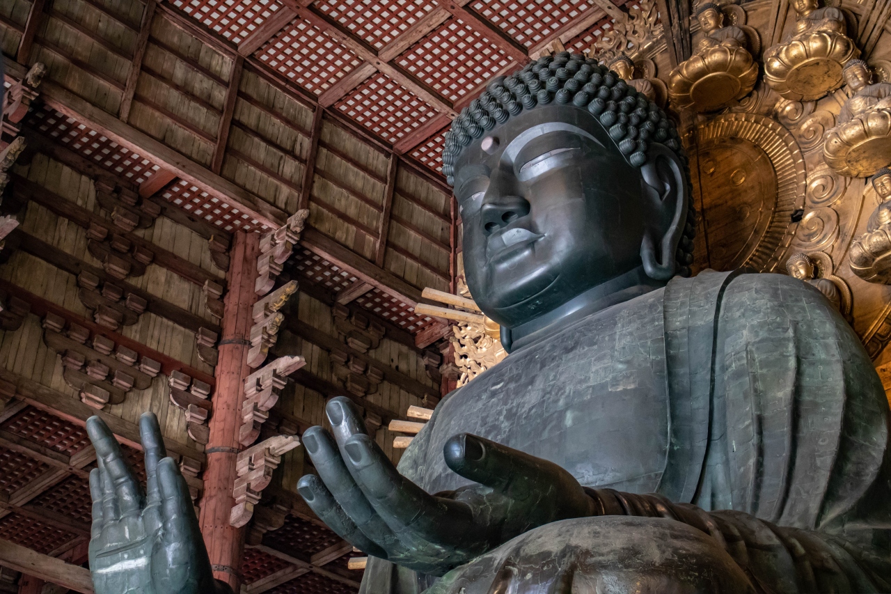 奈良のシンボル大仏殿です。その壮大さに圧倒されます。でも今のものでも十分大きいですが、江戸時代に建てられていた大仏殿はさらに巨大だったとのこと。盧舎那仏はもちろん、左右の仏像も必見です。写真撮影が可能なのも嬉しいポイントです。