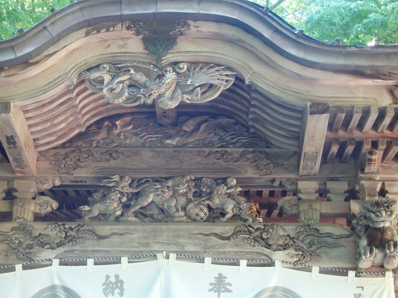 十和田湖(休屋)バス停から木造デッキ、御前ケ浜の砂浜を歩き、乙女の像(ブロンズ像)、十和田自然林を通って25分十和田神社に到着しました。十和田神社の祭神は日本武尊、昔は修行僧の修行場でした。急木段を登ると占い場に行く道があります。お金やお米をおより紙に入れ湖に投げ入れると願いが叶うか否かという占い場あります。現在占場へは通行禁止になっています。拝殿の彫刻が見事なのと、静寂な森林の中で、荘厳さを感じる神社でした