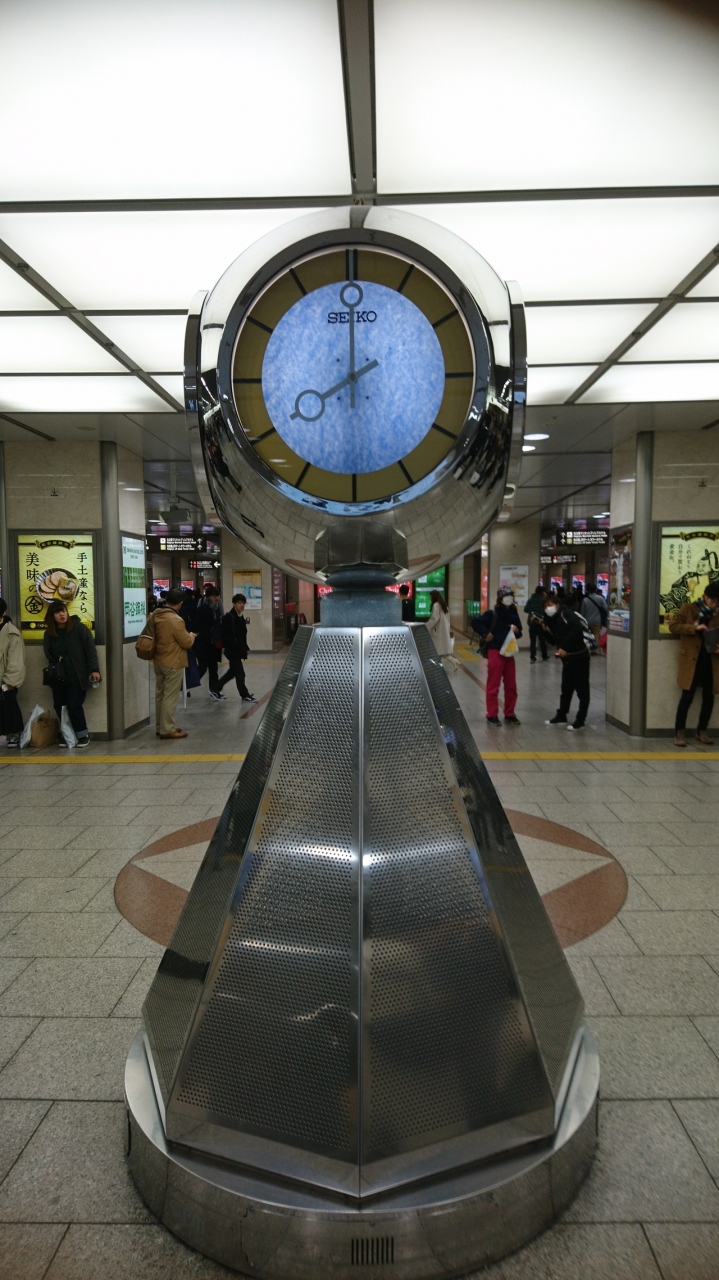 名古屋駅の新幹線ホームのあるコンコース西側に位置する銀の時計は待ち合わせ場所でも有名ですね。時計はSEIKO製でした。東側の金の時計よりは人はいませんが、こちらは新幹線や深夜バスの発着場が近いので大きな荷物を持った人がたくさんいます。