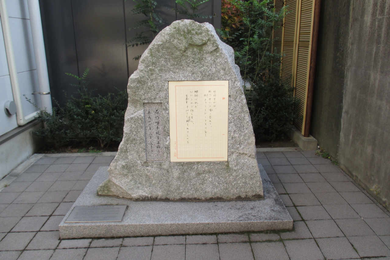 石川啄木終焉の地には歌碑と顕彰室がありました。歌碑の方は啄木の最後の歌とされる2首が記されていますが、原稿用紙に書いたままのものが石碑となっていました。歌碑というと歌だけを刻んだものが多い中で、肉筆そのままを石碑にしているのが斬新で、とても良かったです。