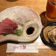 今回は、中トロとウニのお造り・お好み握り(トロ・ホタテ・ボタン海老・シャコ・ウニ・トビッコ)を注文。