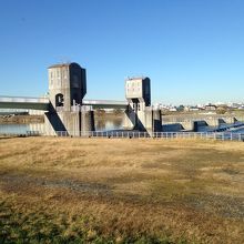 開けた多摩川に人工の構造物があって良い風景だなと思っていたら実は先代の堰堤は豪雨による濁流を阻害する形となって爆破されたという歴史があったそうです。